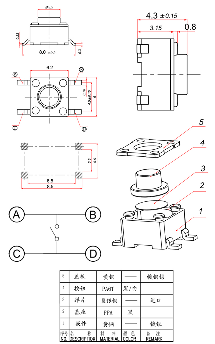 首頁 > 產(chǎn)品中心 > TS6643TP-8.0輕觸開關(guān)