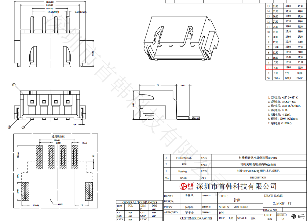 首頁 > 產品中心 > 2.54mm間距臥貼